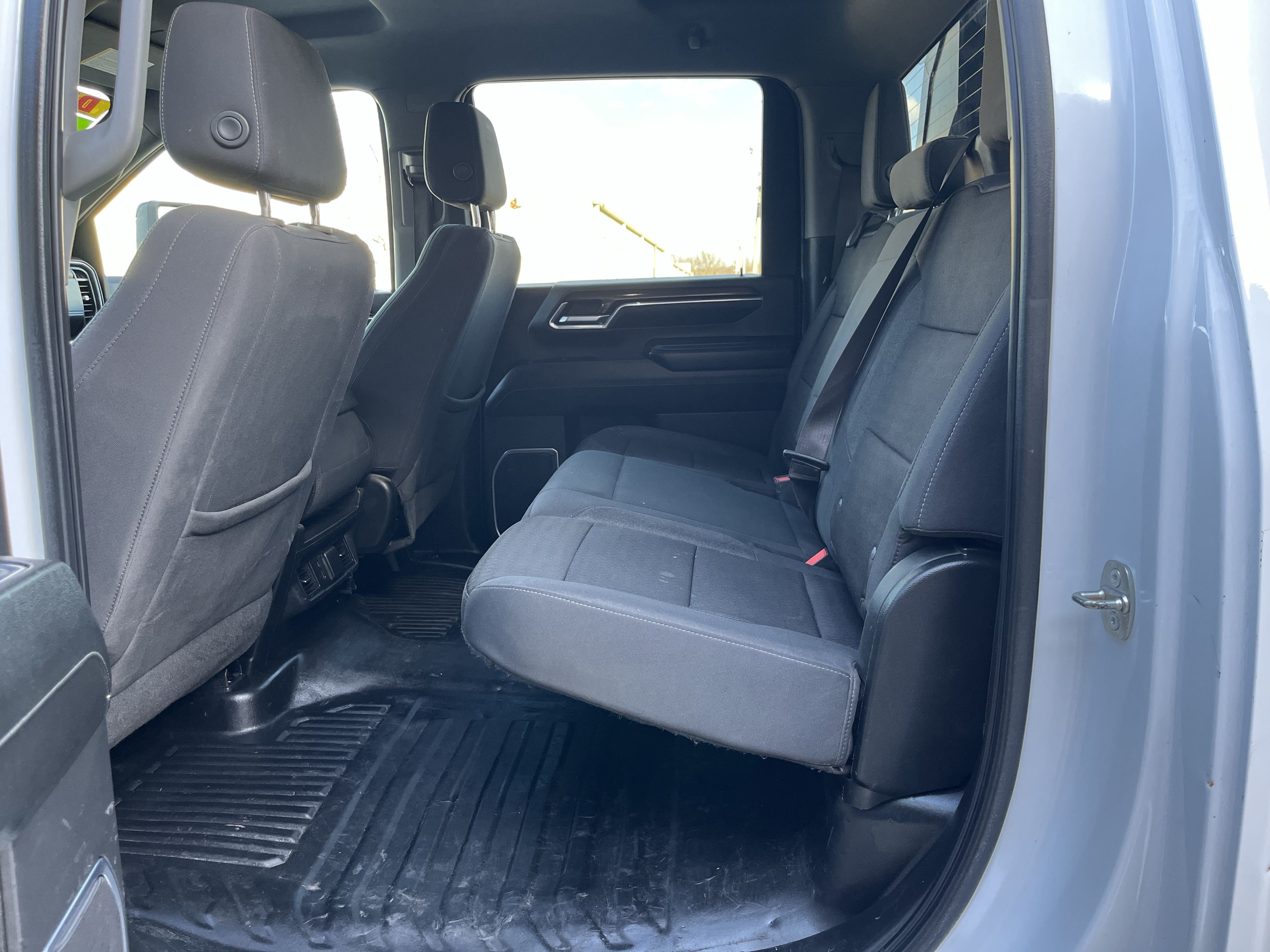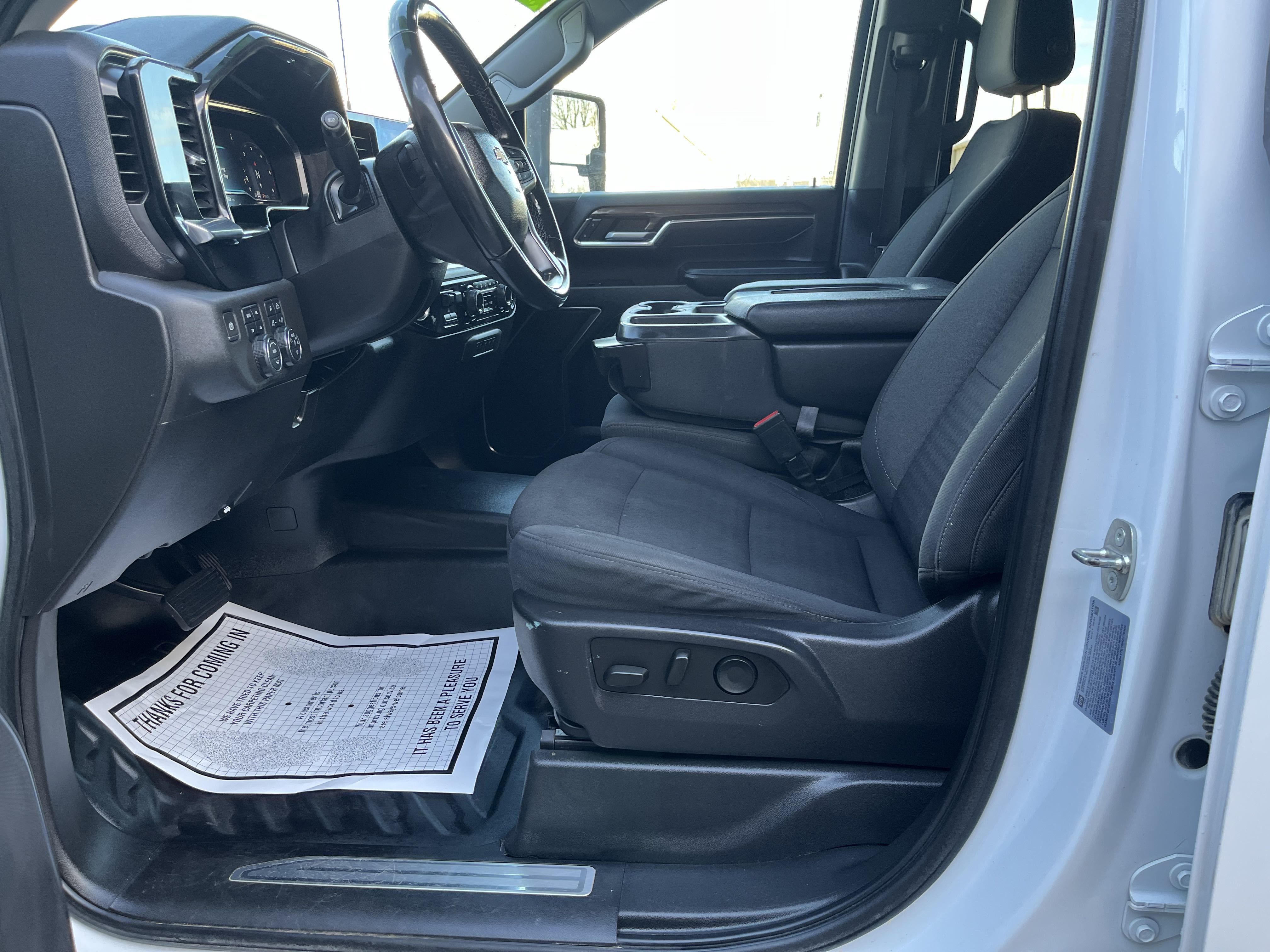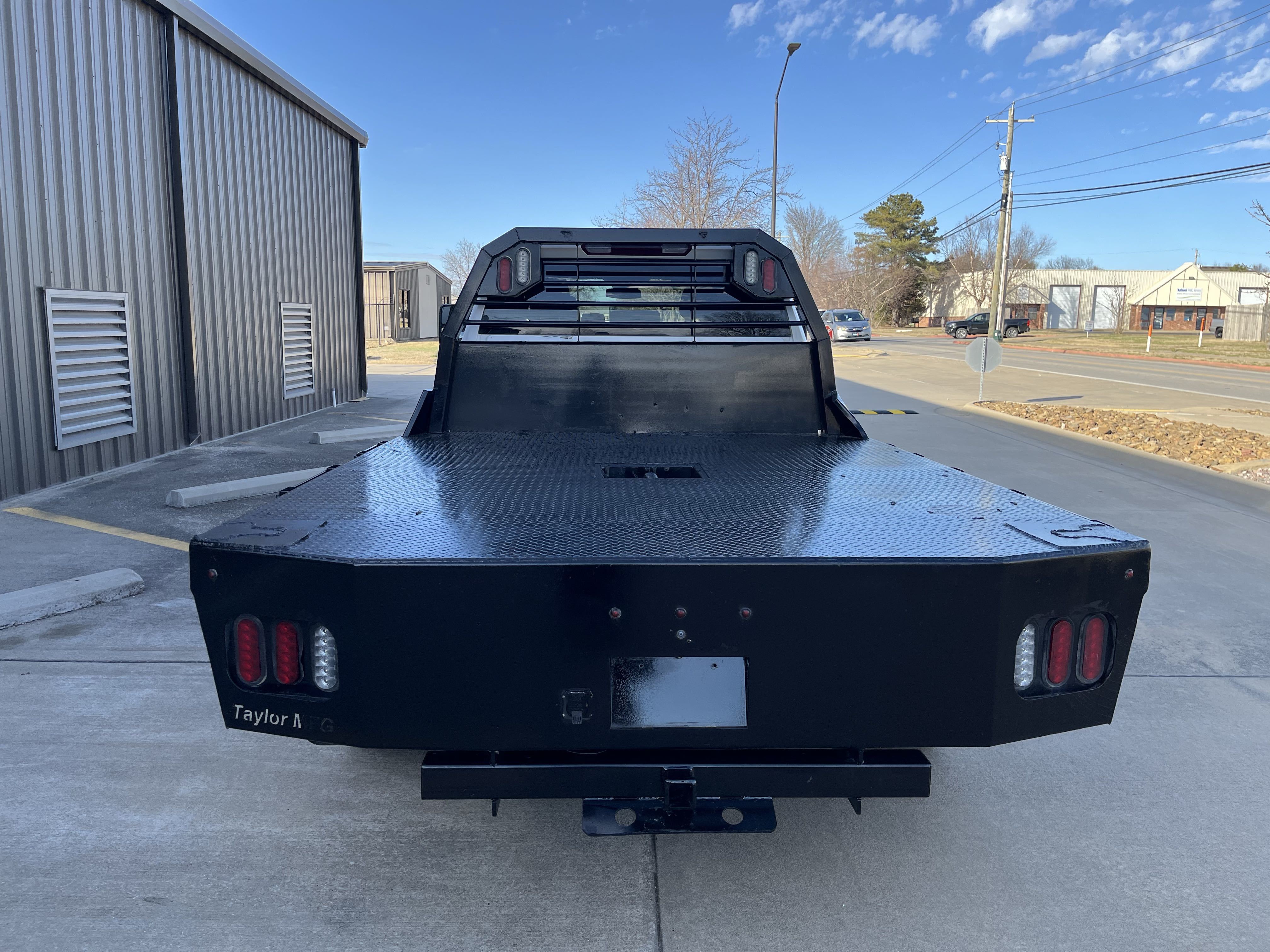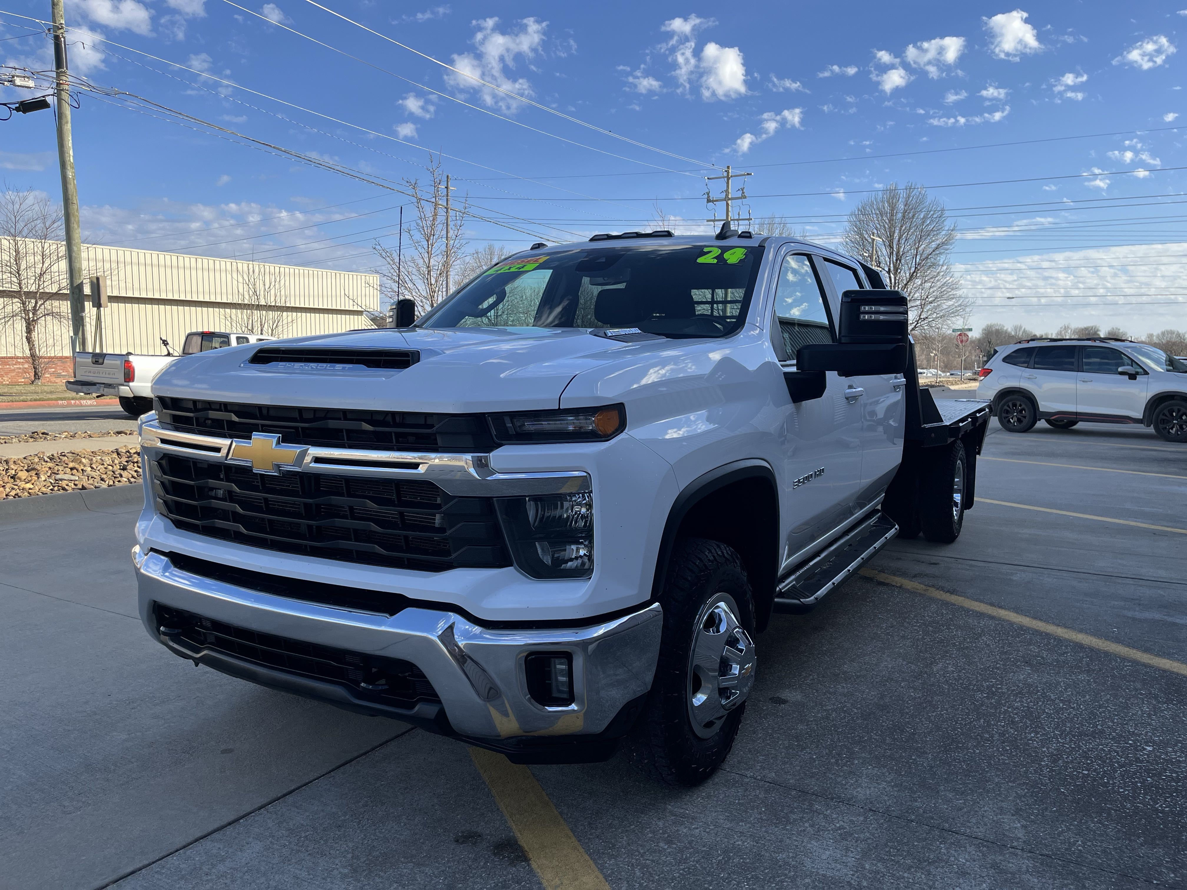 2024 Chevrolet Silverado 3500 flatbed with 6.6 Duramax, Allison transmission, and only 128K miles! 4x4, Dual rear wheels, charcoal colored cloth seats, easy to clean rubber floors, cold AC, large media control console, cruise control, back up cameras and much, much, more!